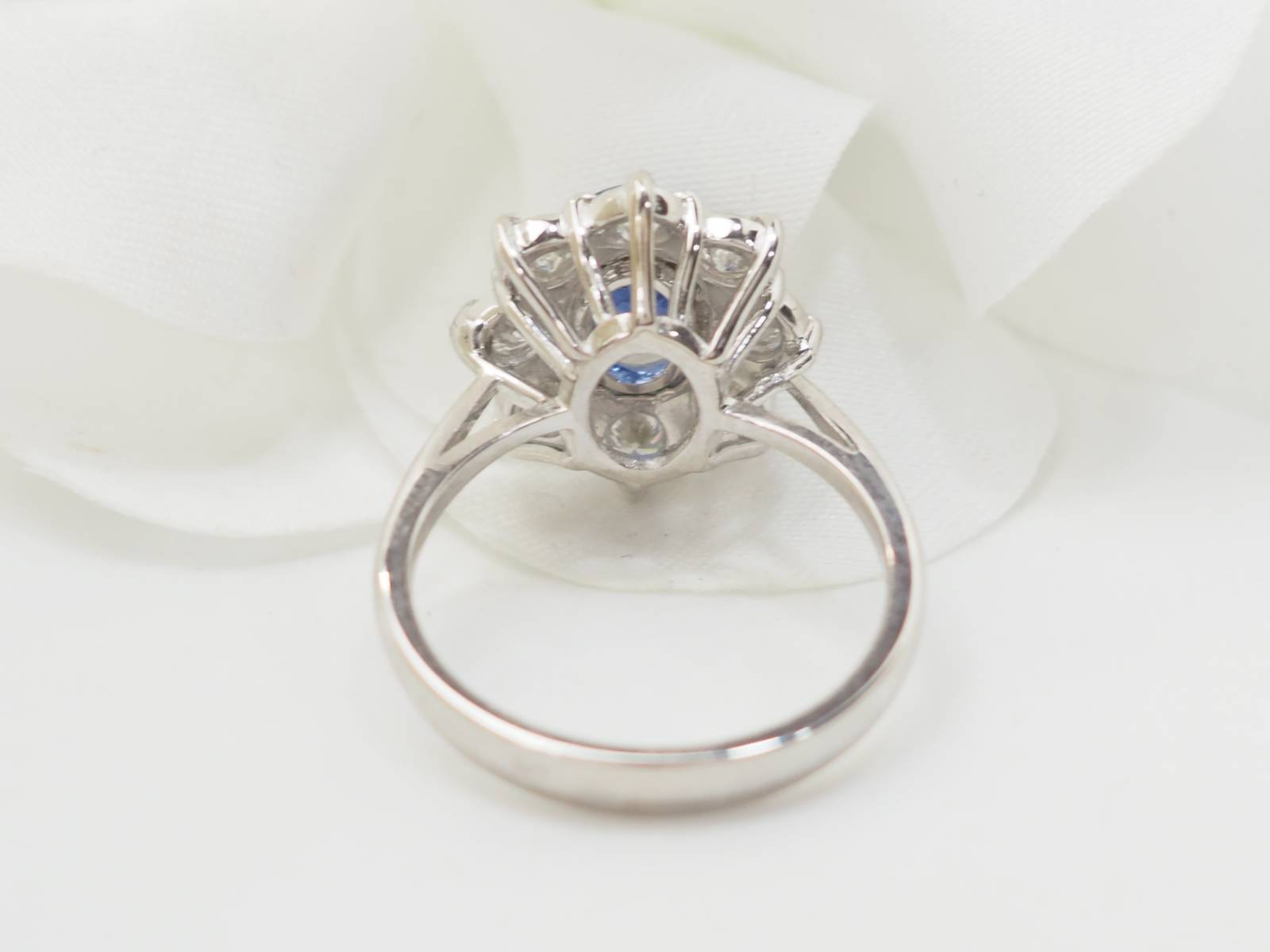 bague solitaire en or blanc, diamants et saphir ovaleVoici ses caractéristiques :