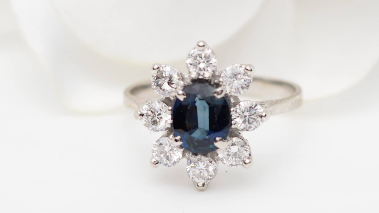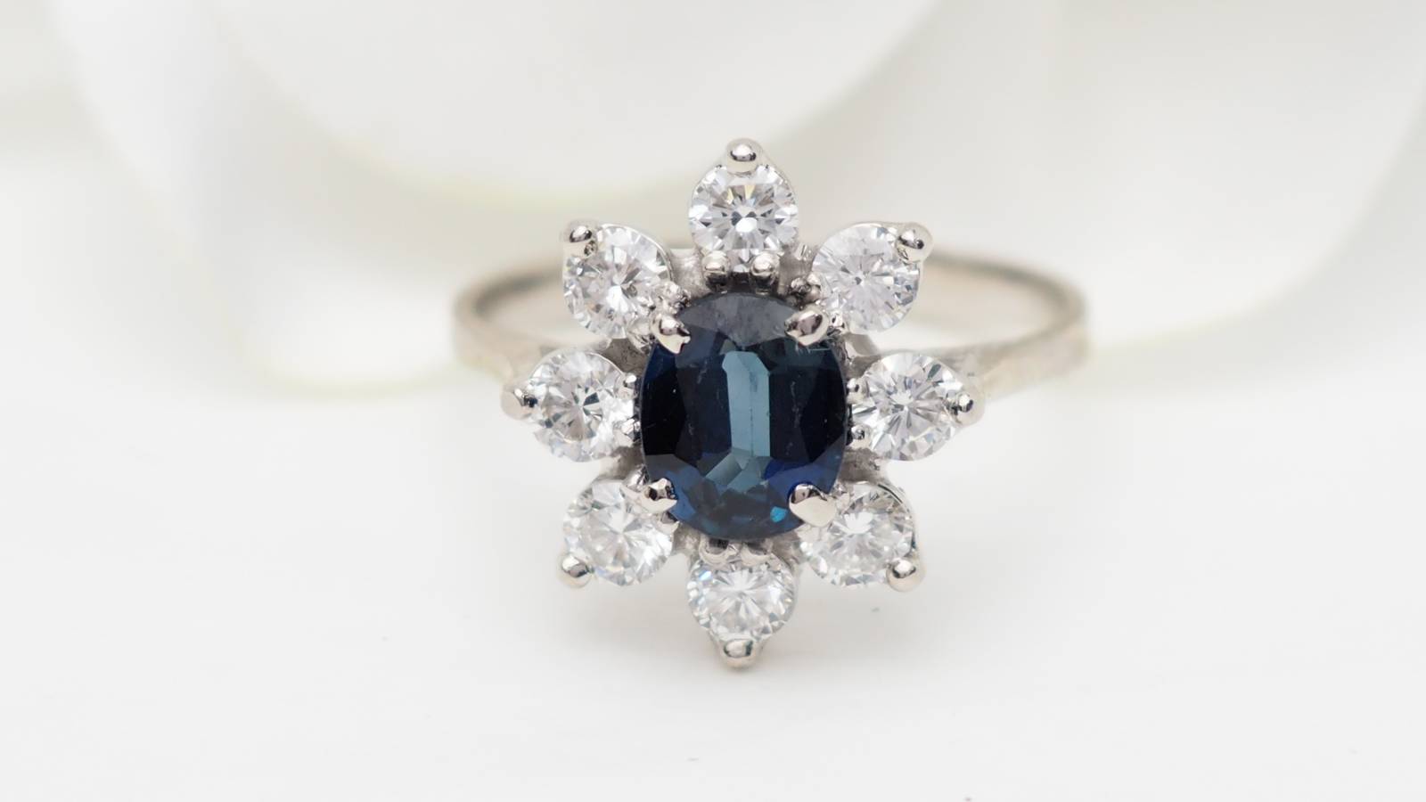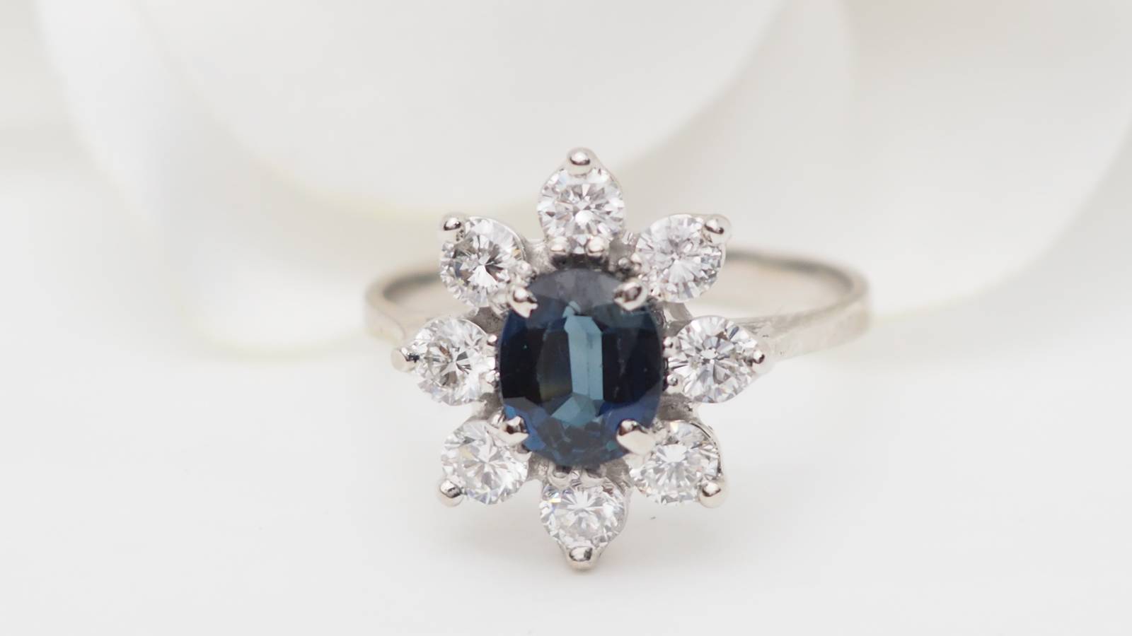 Parmi nos bijoux anciens, nous vous proposons, par exemple, cette très jolie bague vintage en platine ornée de rubis ovale et diamants.