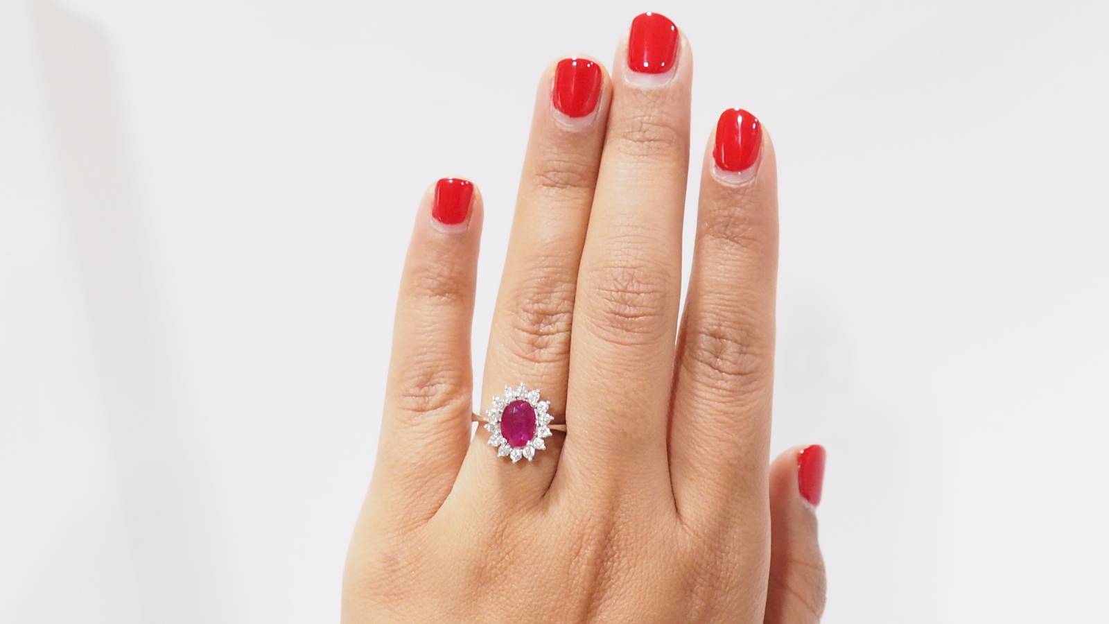 - Ornée d'un rubis ovale de 1,91cts, origine Birmanie ;
