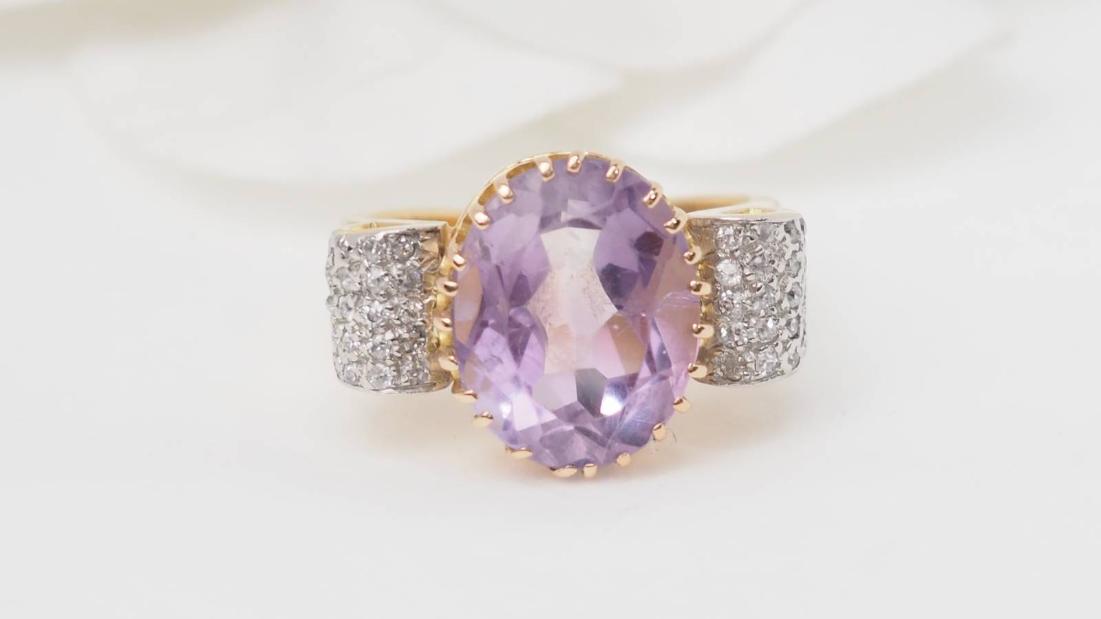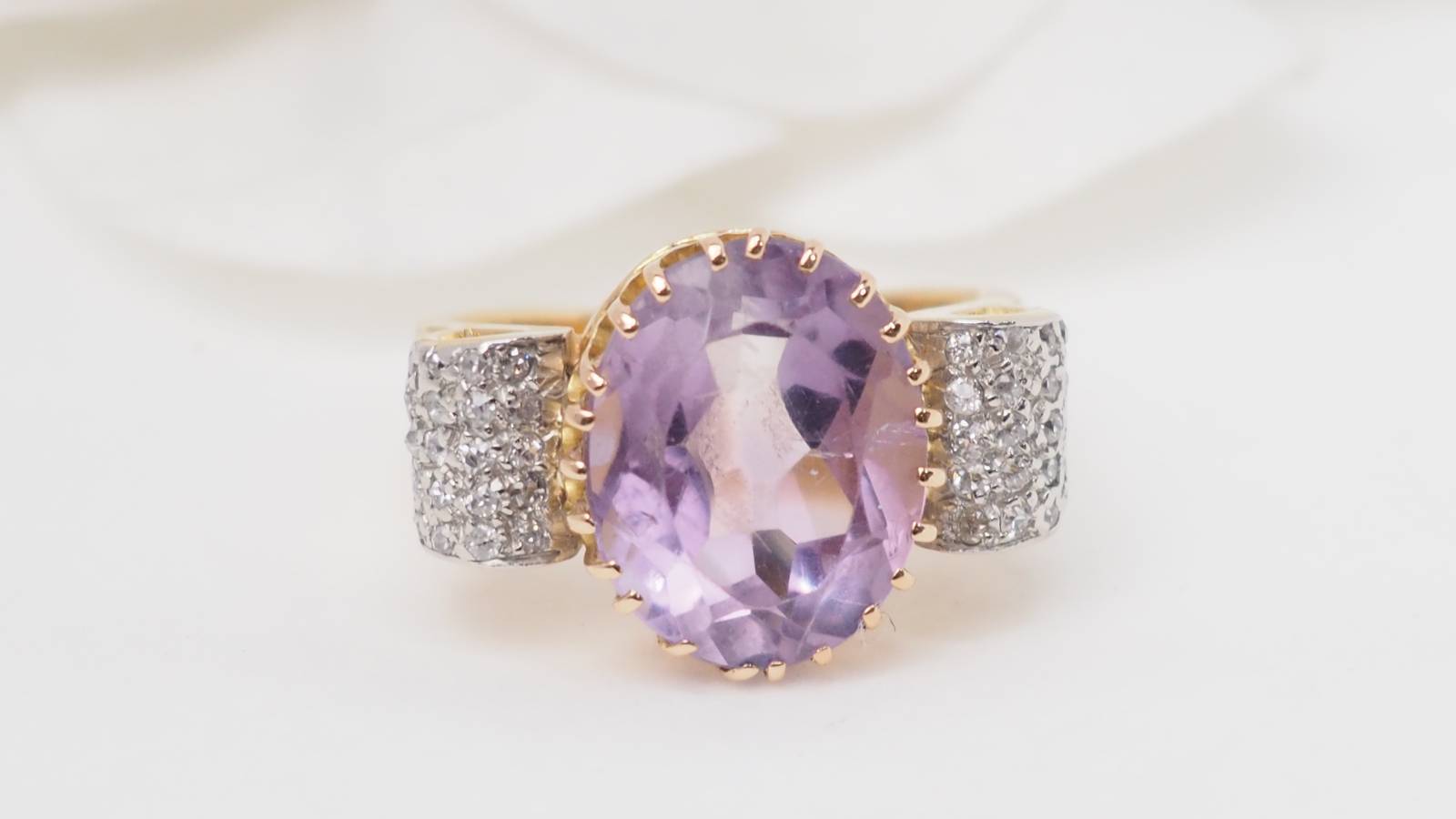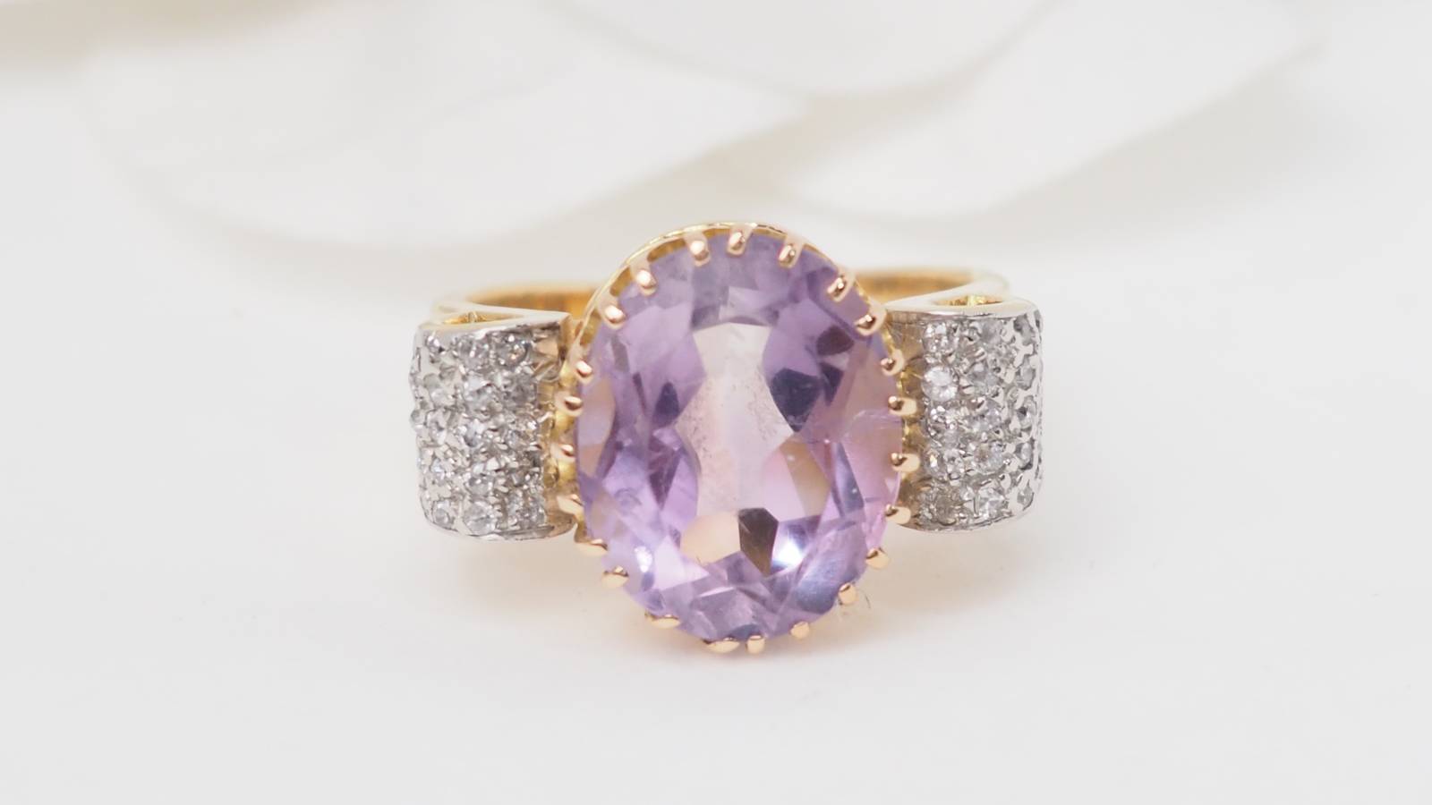 Bague en or jaune, améthyste et diamants.