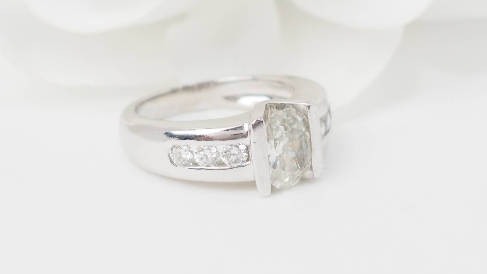 En vous rendant dans notre bijouterie, vous découvrirez, par exemple, ce très beau solitaire en or blanc et diamants.