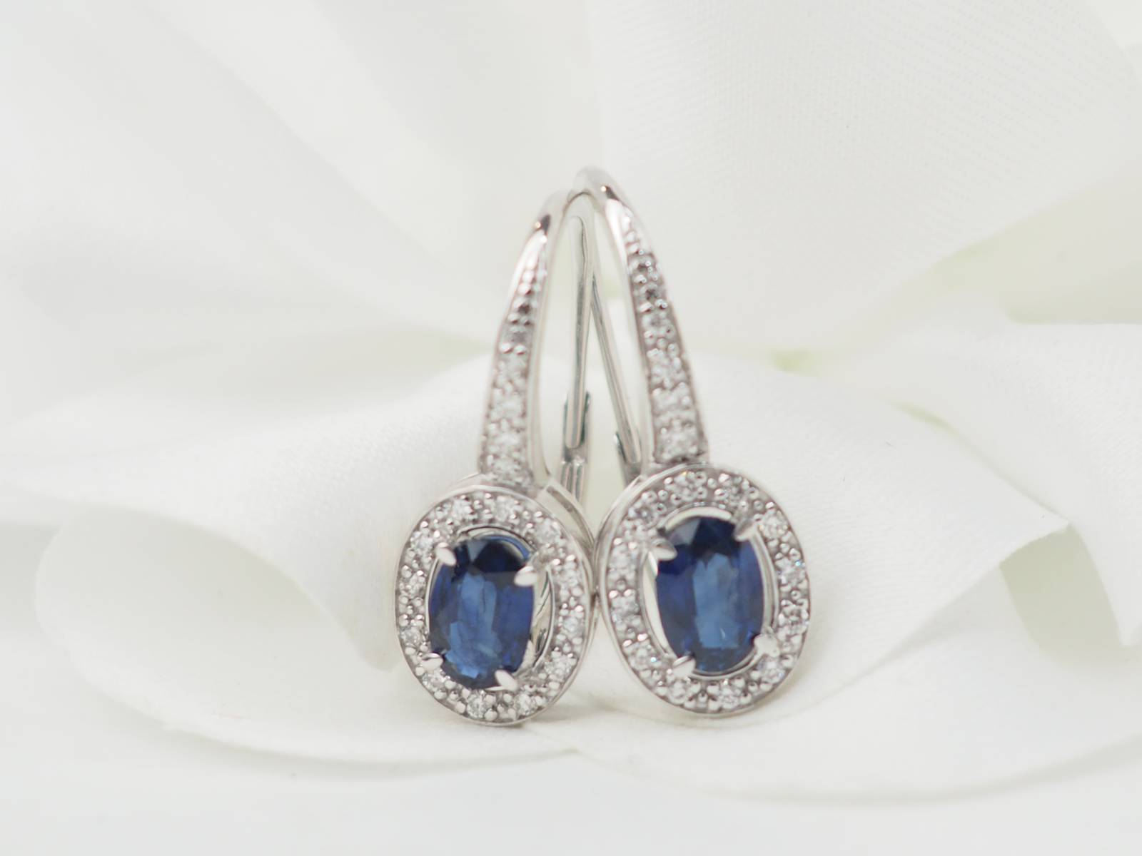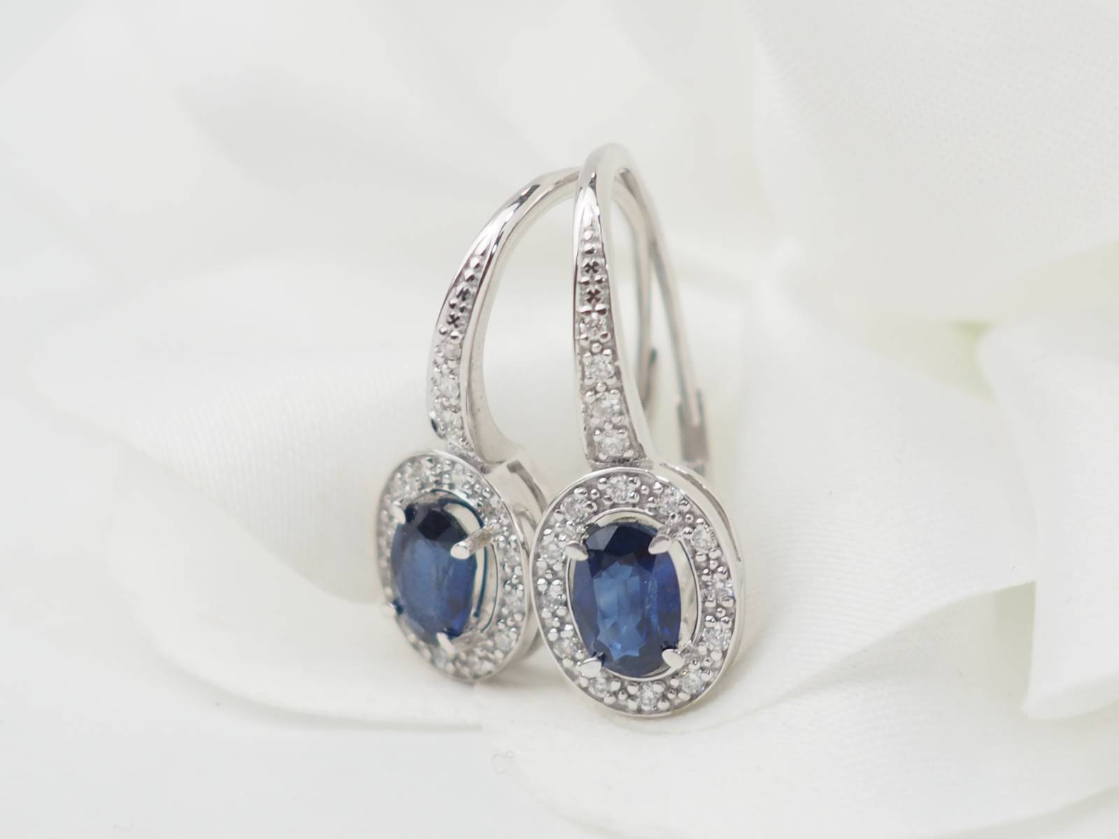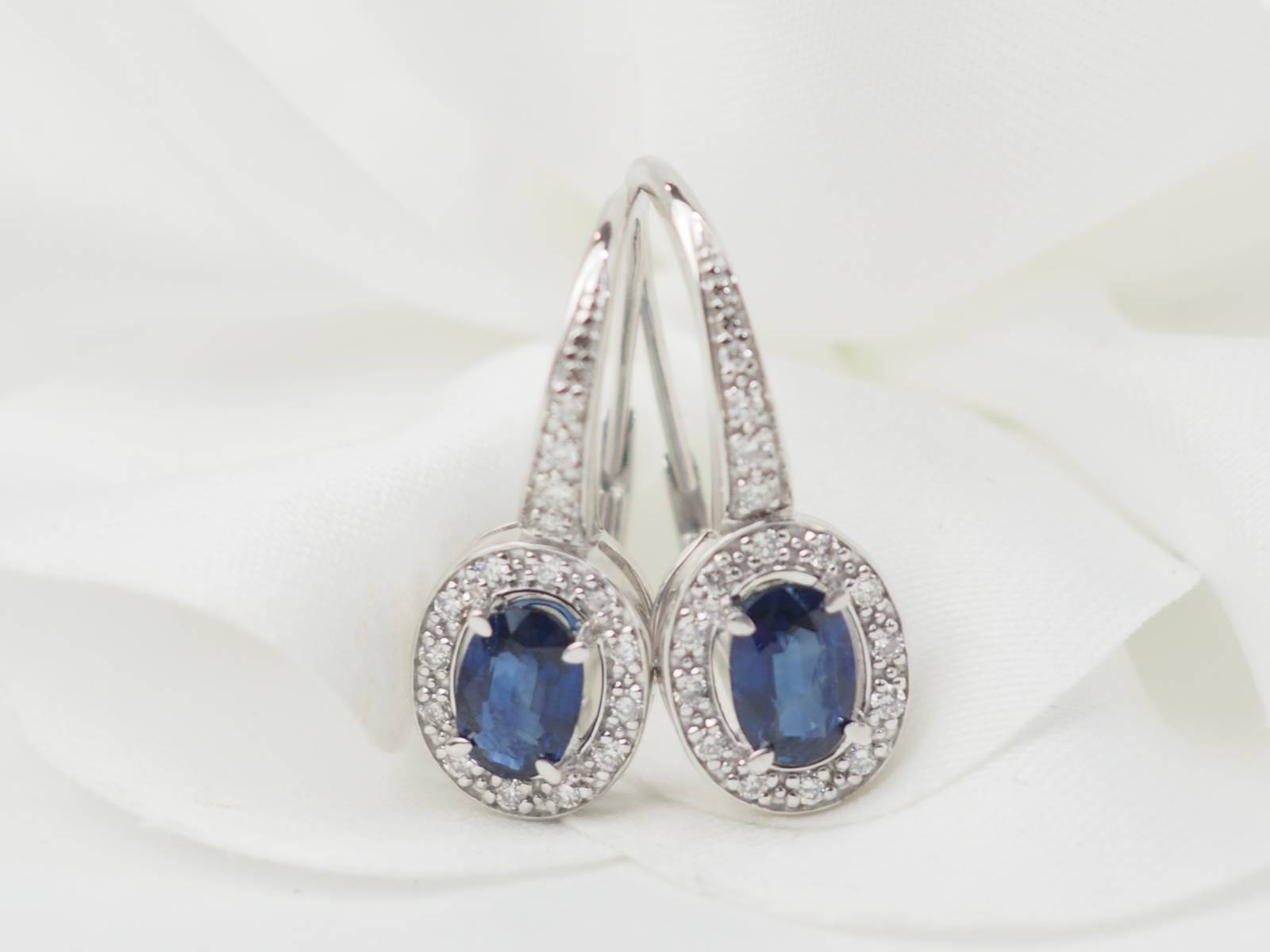 paire de boucles d'oreilles dormeuses en or blanc et saphirs.