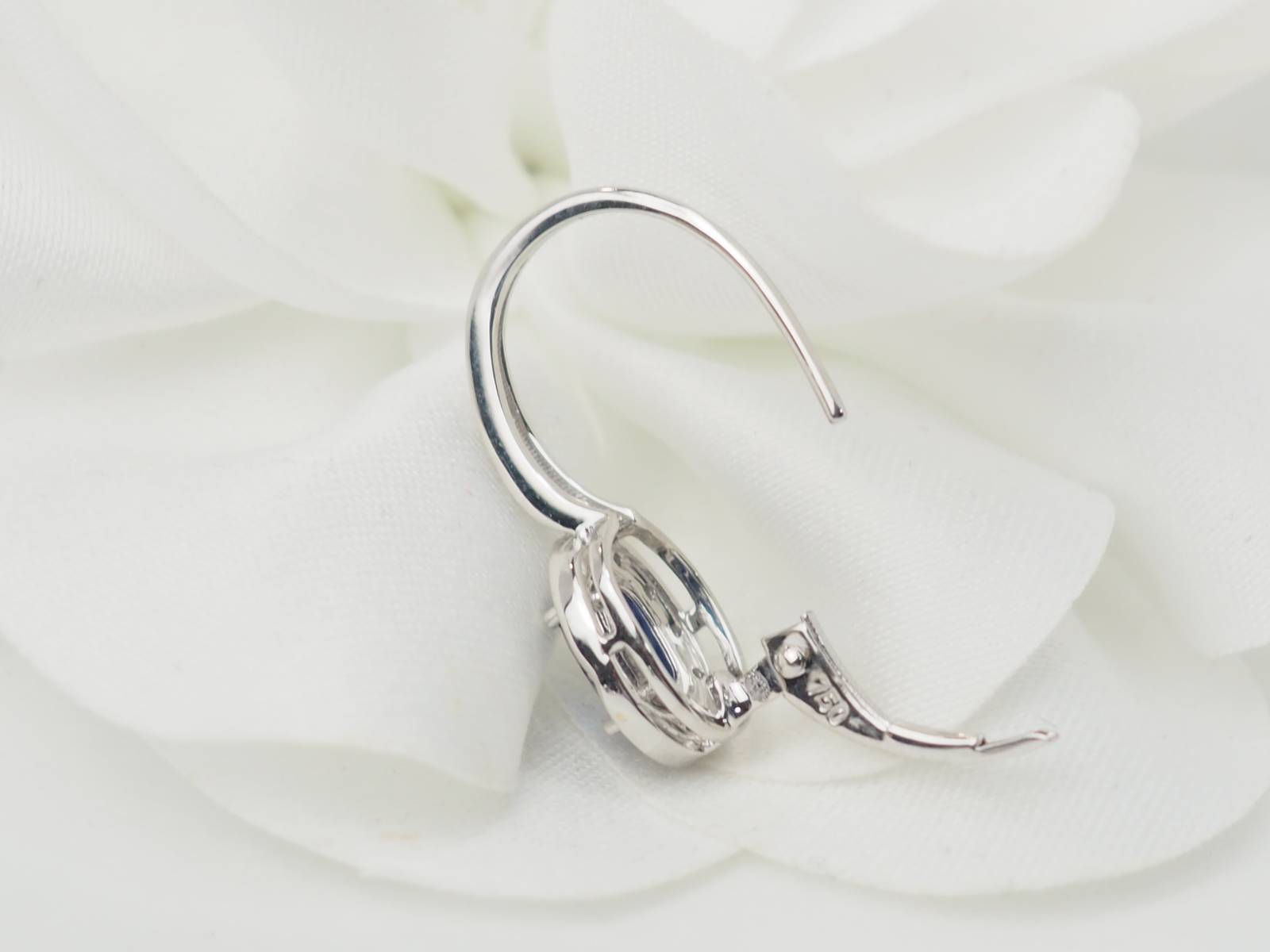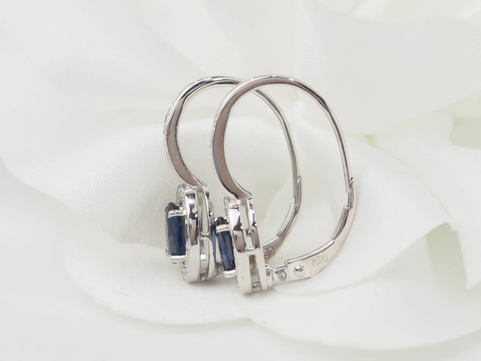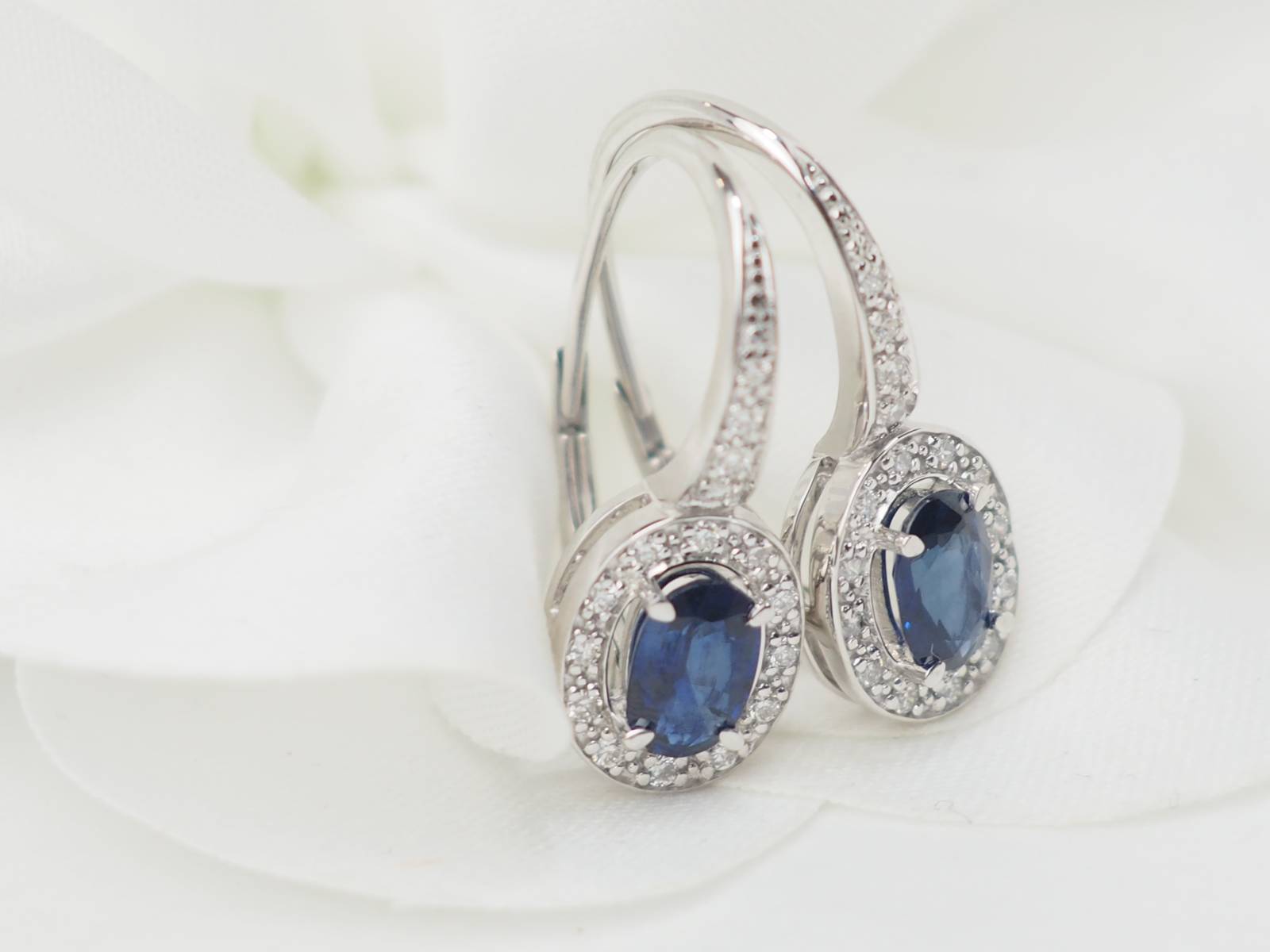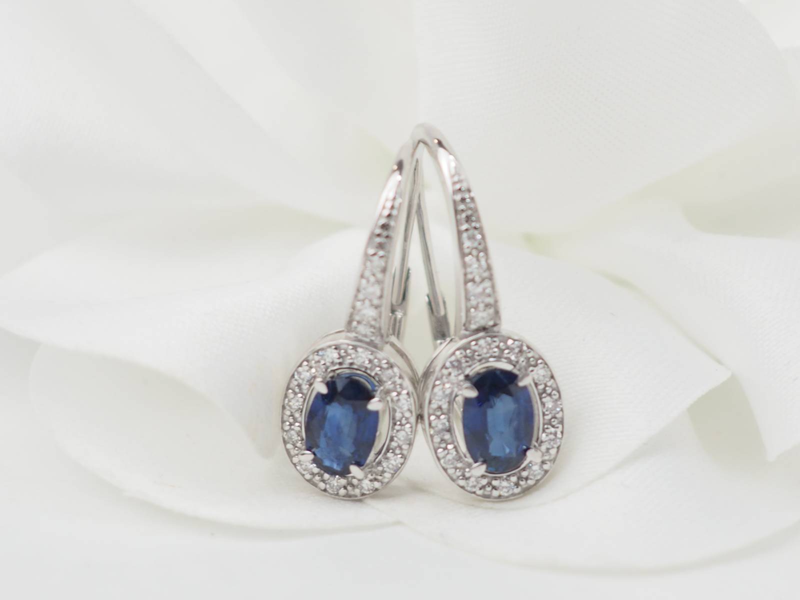 paire de boucles d'oreilles dormeuses en or blanc et saphirs.