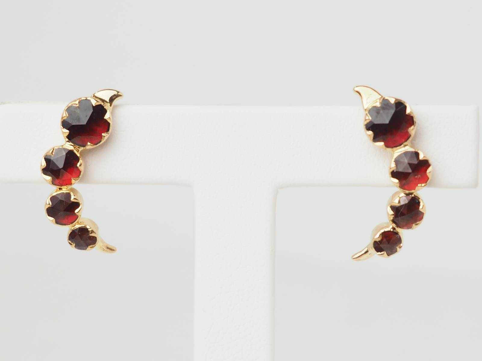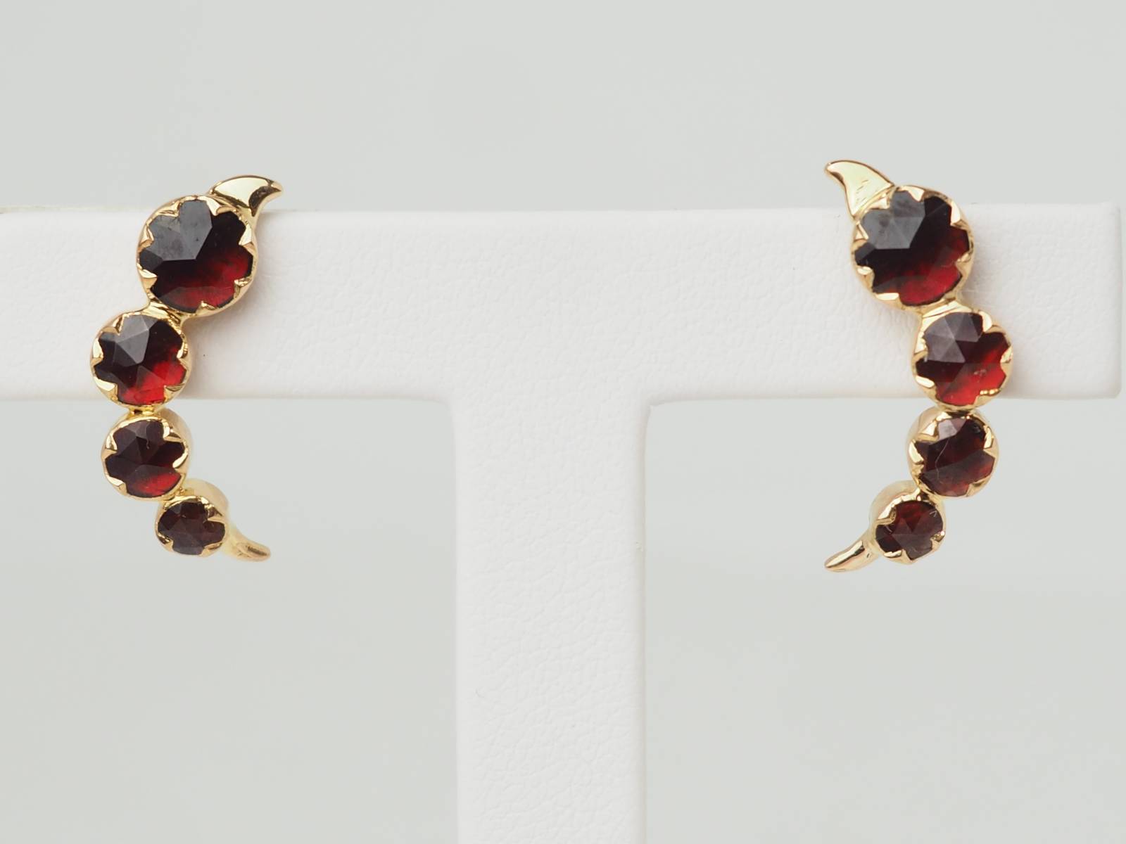 Boucles d'oreilles anciennes en or jaune et Grenats de perpignan.