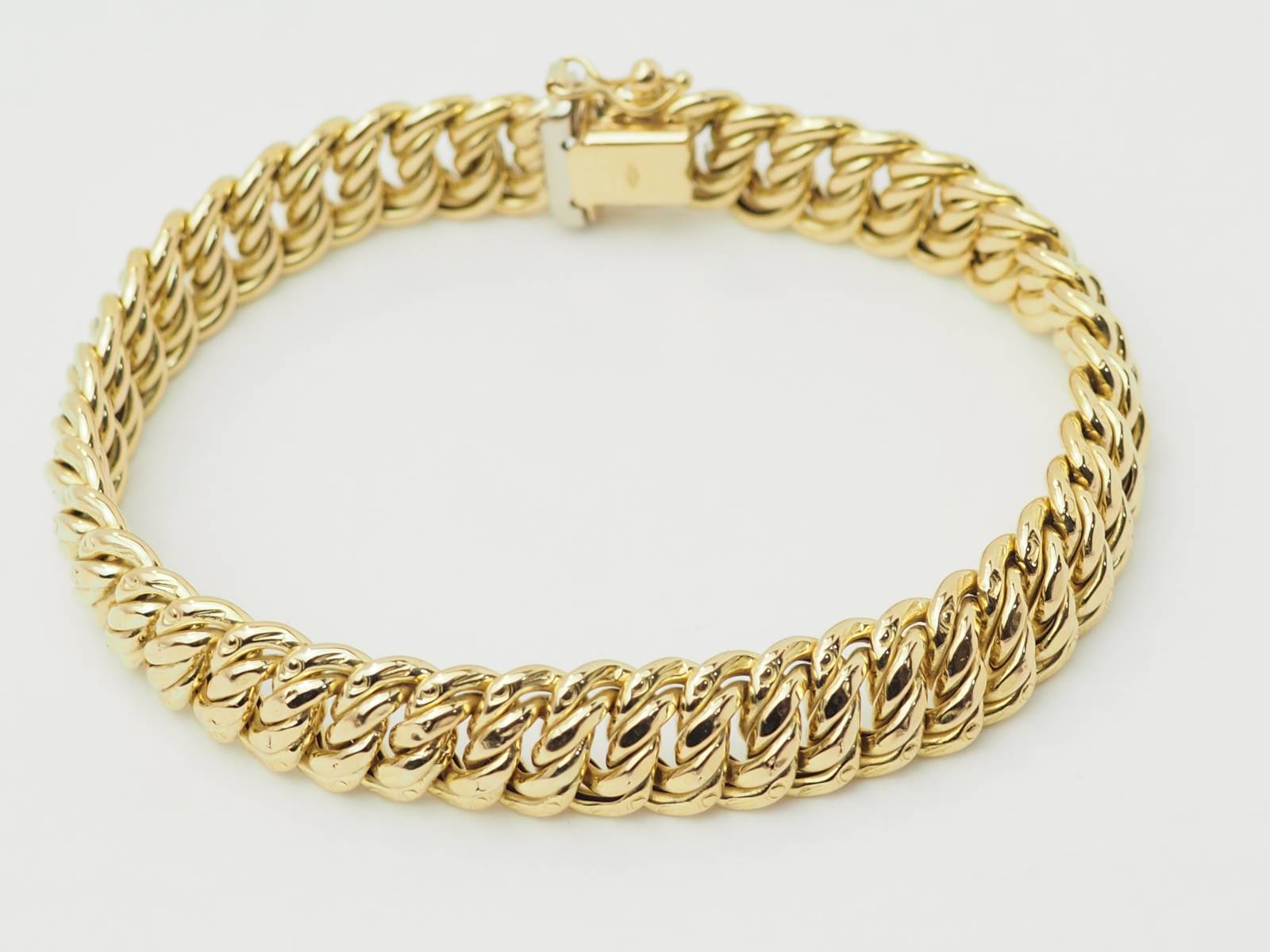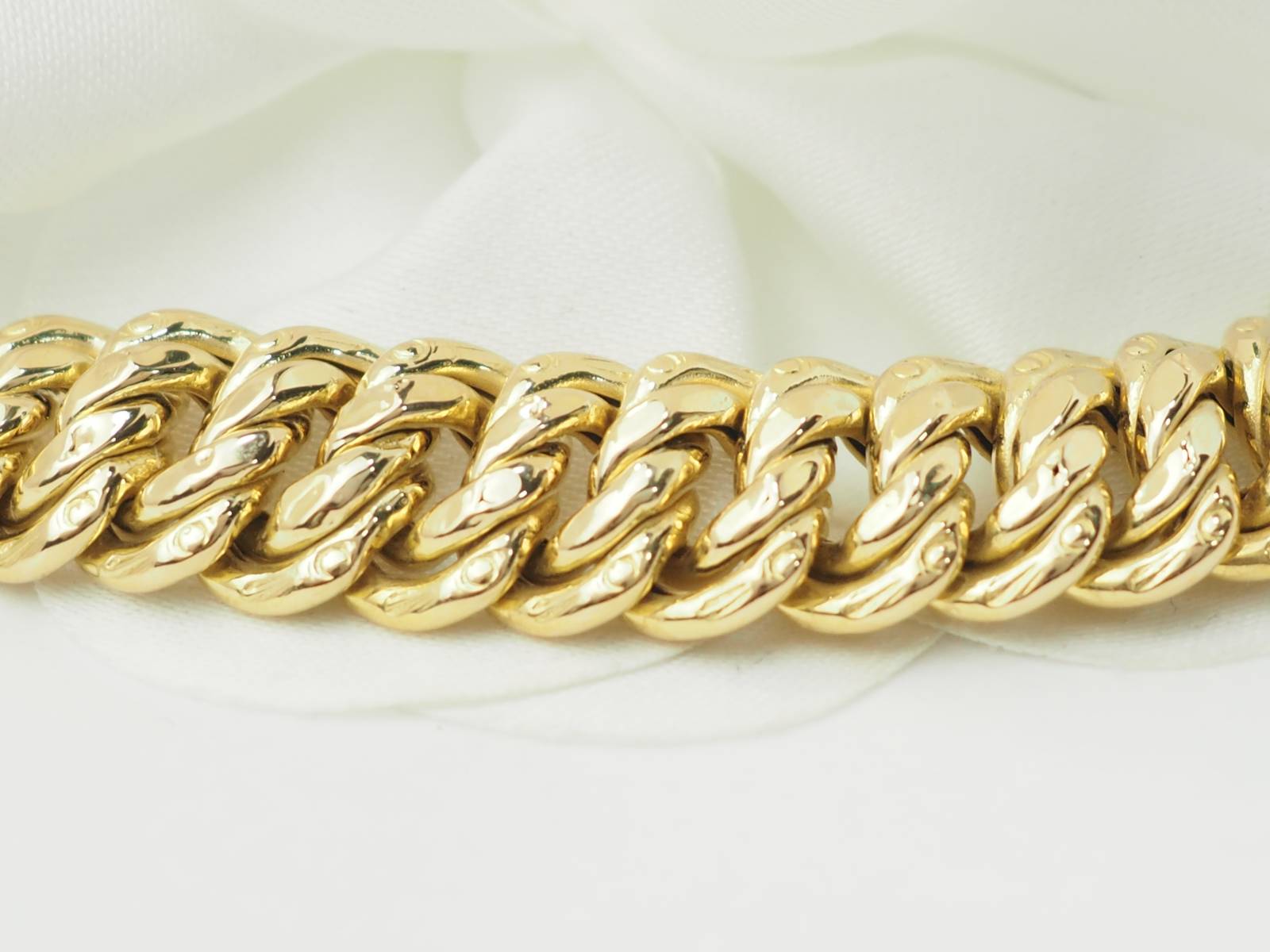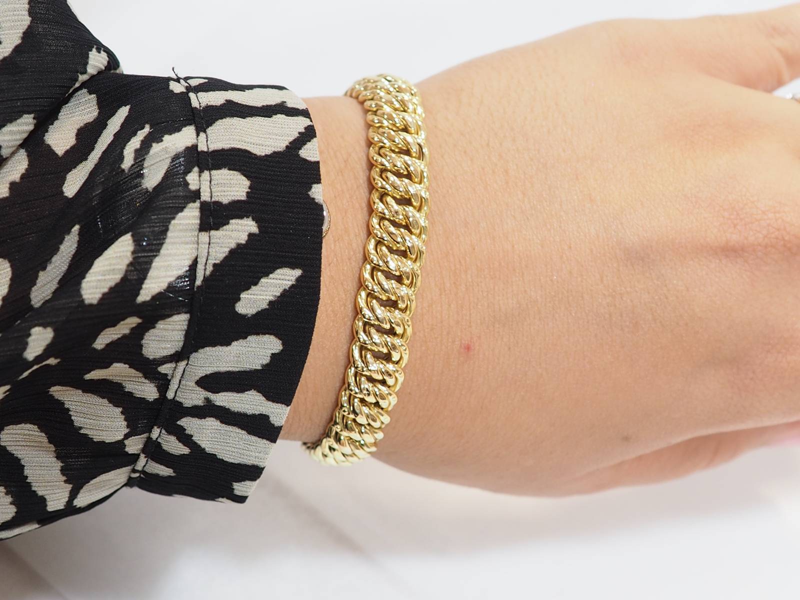Découvrez, par exemple, dans notre bijouterie, ce magnifique bracelet maille américaine en or jaune.