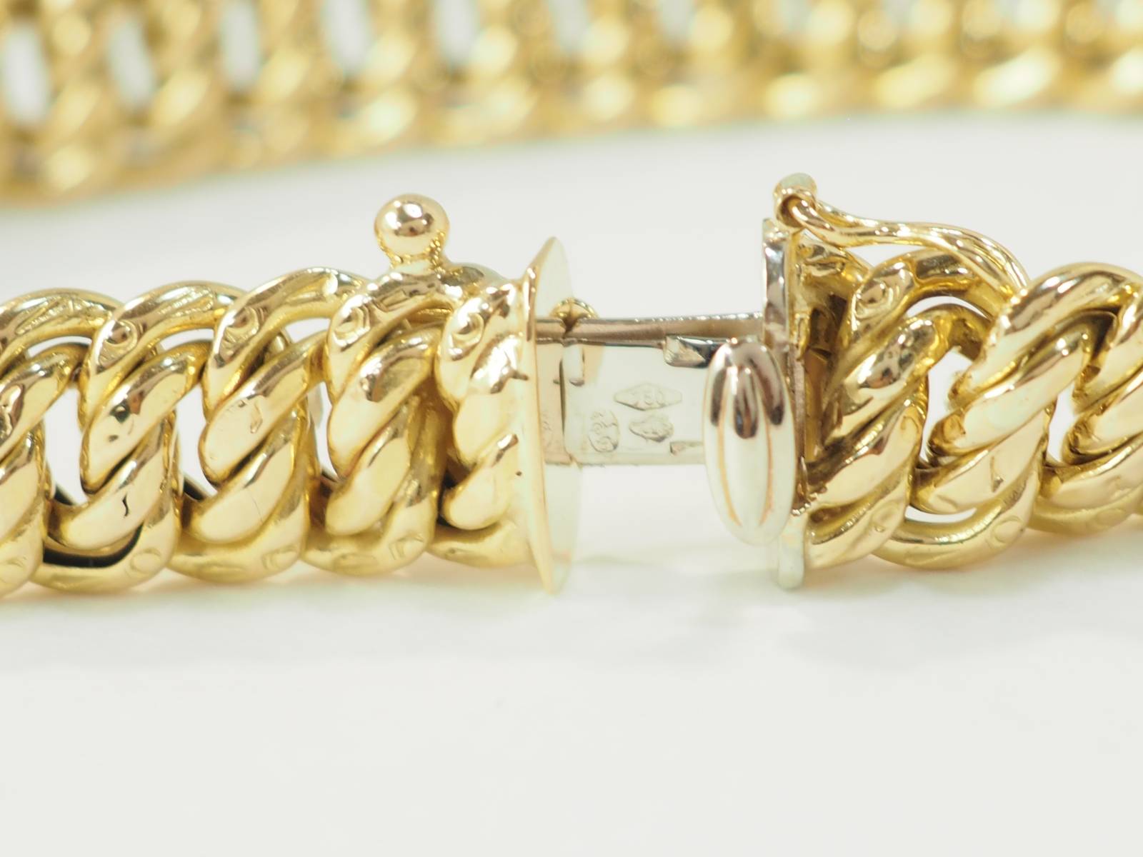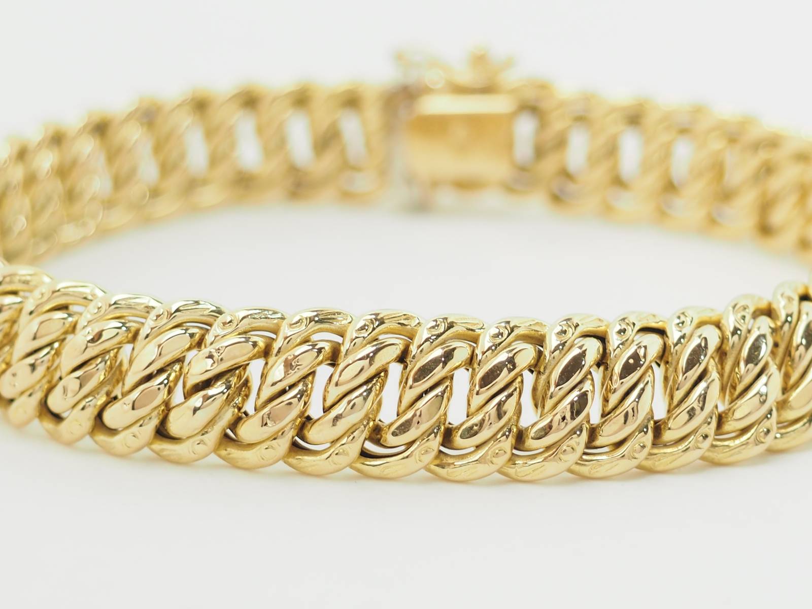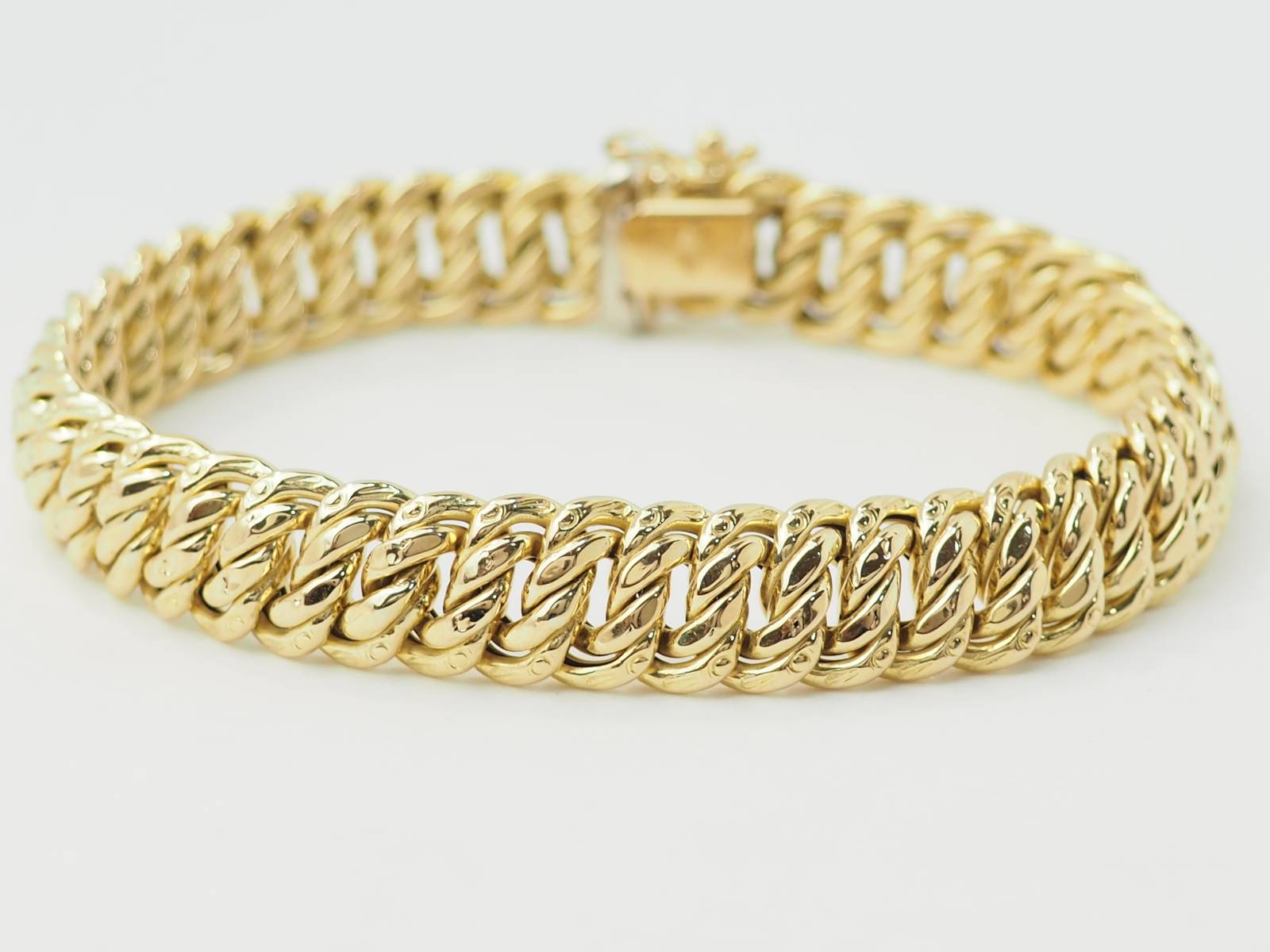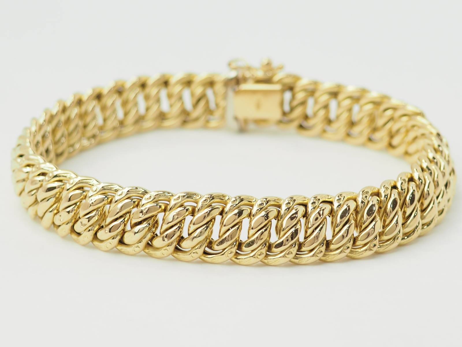 Découvrez, par exemple, dans notre bijouterie, ce magnifique bracelet maille américaine en or jaune.