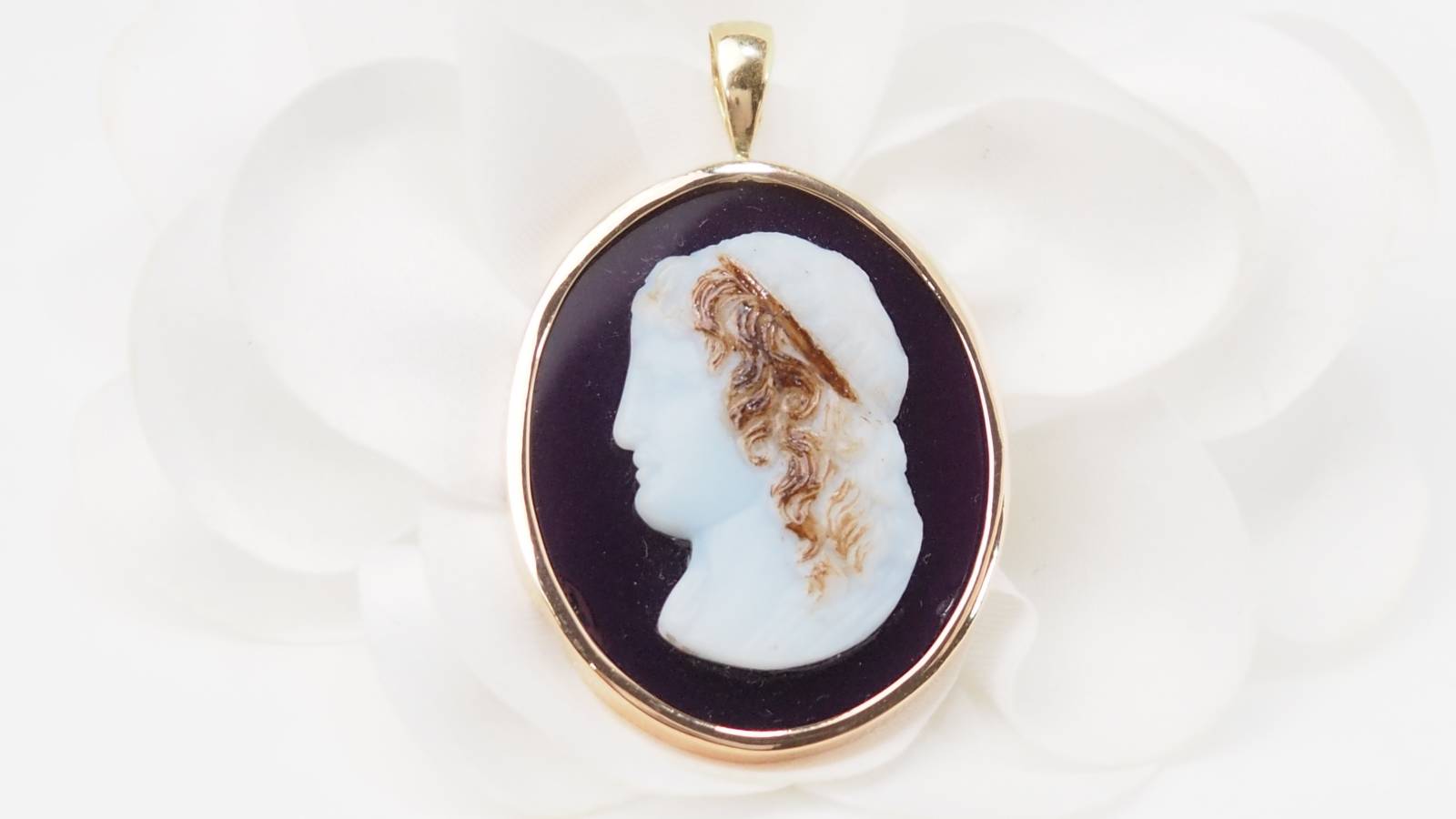 Nous proposons à la vente, par exemple, ce très beau pendentif camée sur agate à un prix très intéressant.