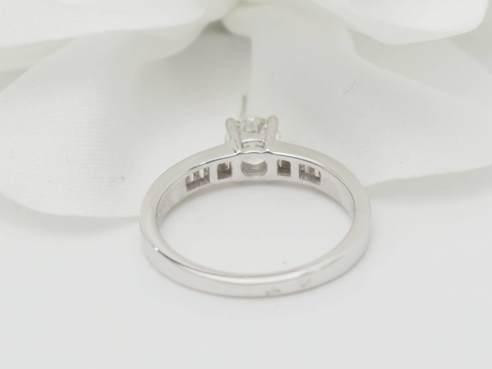 - Solitaire en or blanc, diamant de 0,55 carat et petits diamants taille brillant